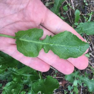 Cette plante sauvage est vraiment facile à reconnaître. Son petit nom patience-violon explique la forme de la plante : sa feuille est en forme de violon. elle est donc très facilement repérable et d’autre part, elle pousse en rosette , toutes ses feuilles partent du bas, comme une salade.